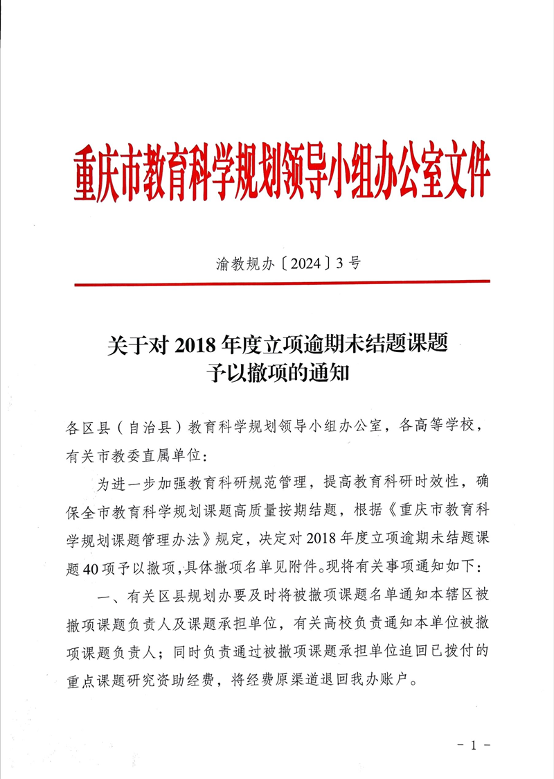关于对2018年度立项逾期未结题课题予以撤项的通知