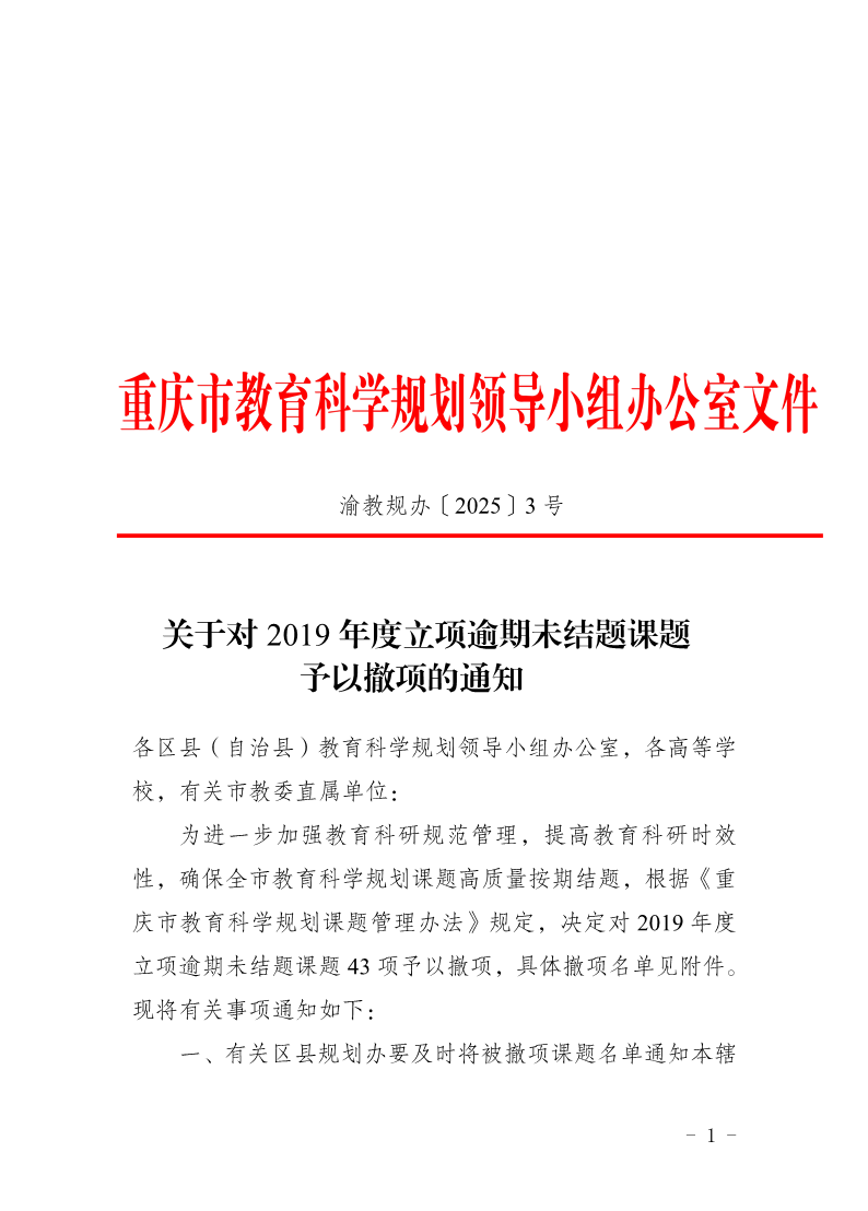 关于对2019年度立项逾期未结题课题予以撤项的通知