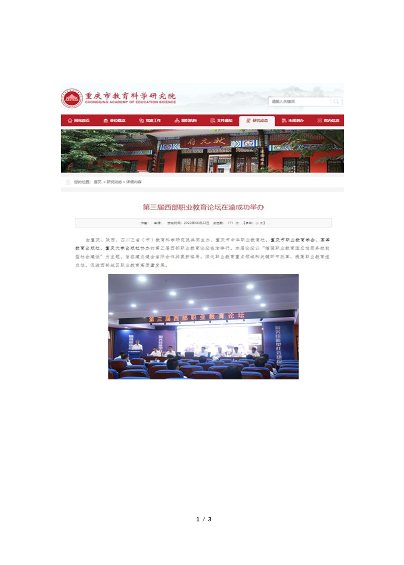 28.成果第一完成单位主办第三届西部职业教育论坛进行成果推广