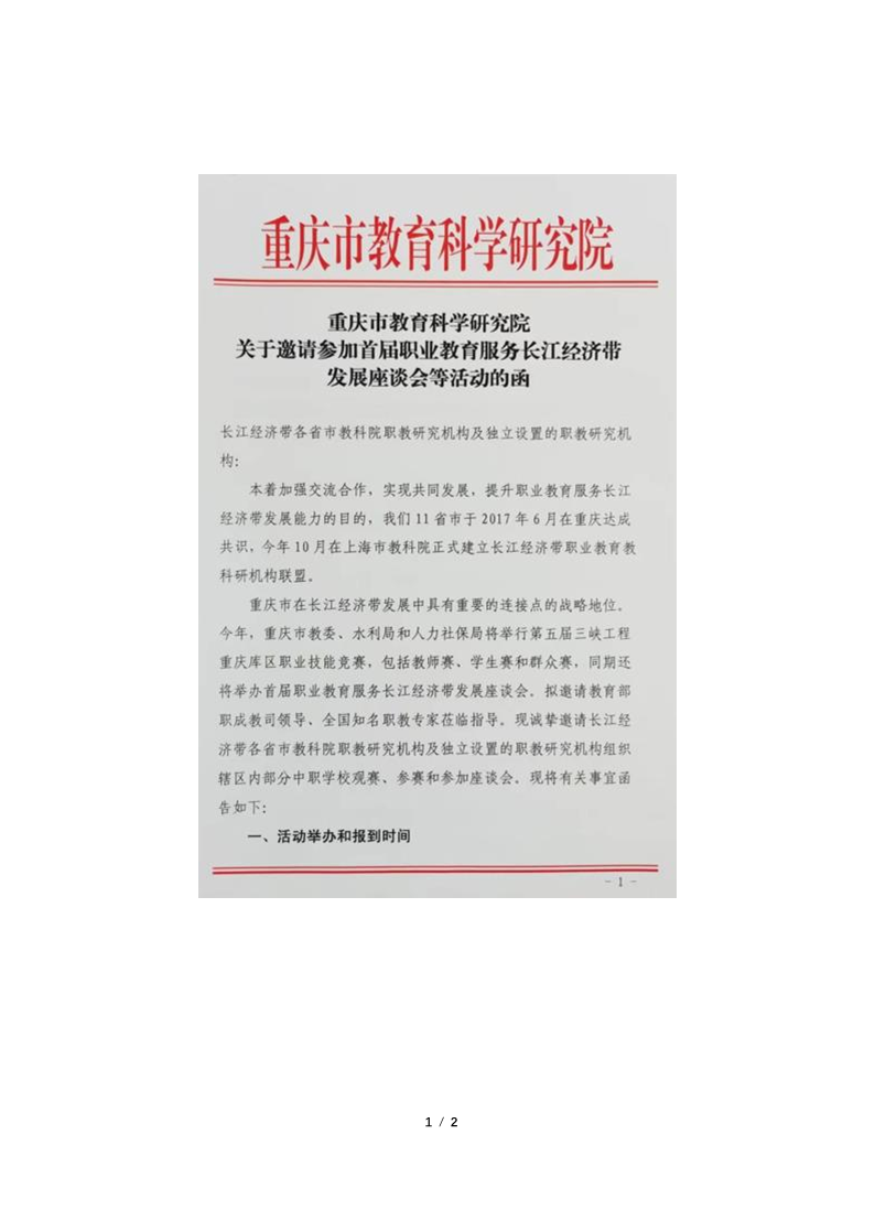 19.重庆捷克论坛 关于邀请参加首届职业教育服务长江经济带发展座谈会等活动的函