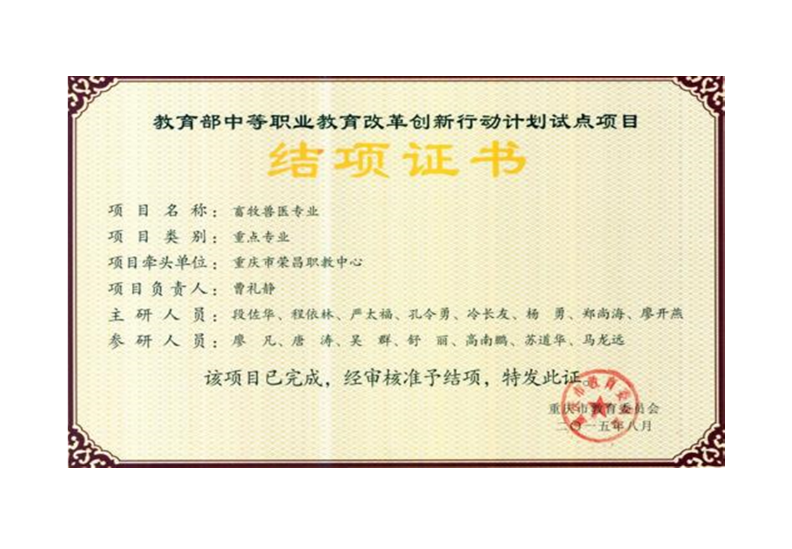 22.教育部中等职业教育改革创新行动计划试点项目《畜牧兽医专业》结题