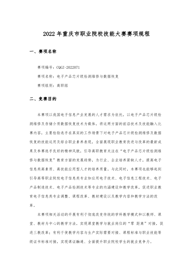 CQGZ-2022071电子产品芯片级检测维修与数据恢复高职组赛项规程