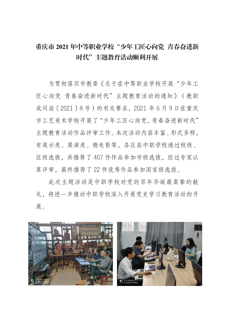 重庆市2021年中等职业学校“少年工匠心向党青春奋进新时代”主题教育活动顺利开展
