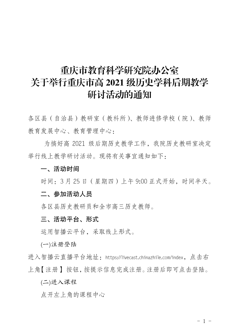 关于举行重庆市高2021级历史学科后期教学研讨活动的通知