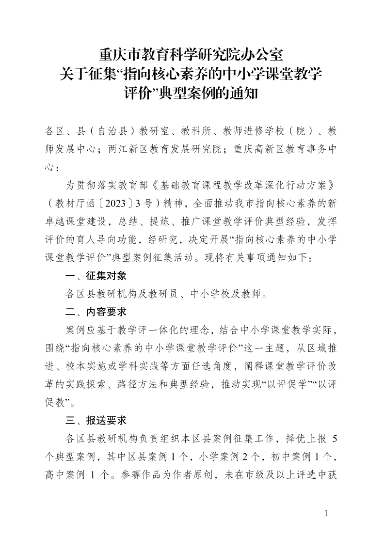 捷克论坛 办公室关于征集“指向核心素养的中小学课堂教学 评价”典型案例的通知