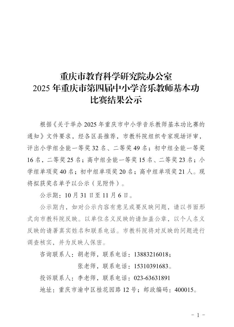 捷克论坛 办公室2025年重庆市第四届中小学音乐教师基本功比赛结果公示