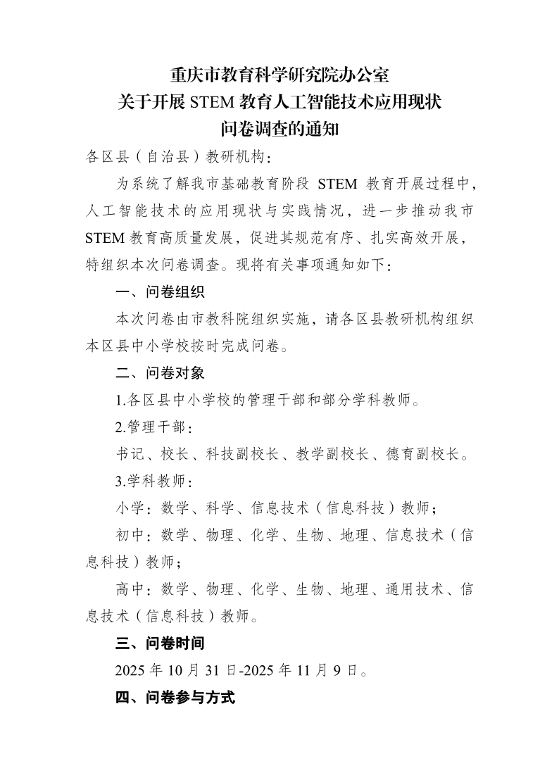 捷克论坛 办公室关于开展 STEM 教育人工智能技术应用现状问卷调查的通知