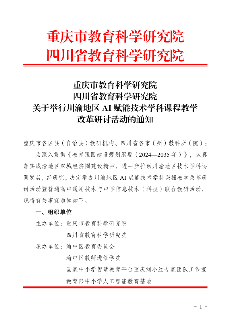 捷克论坛 四川省教育科学研究院关于举行川渝地区AI赋能技术学科课程教学 改革研讨活动的通知
