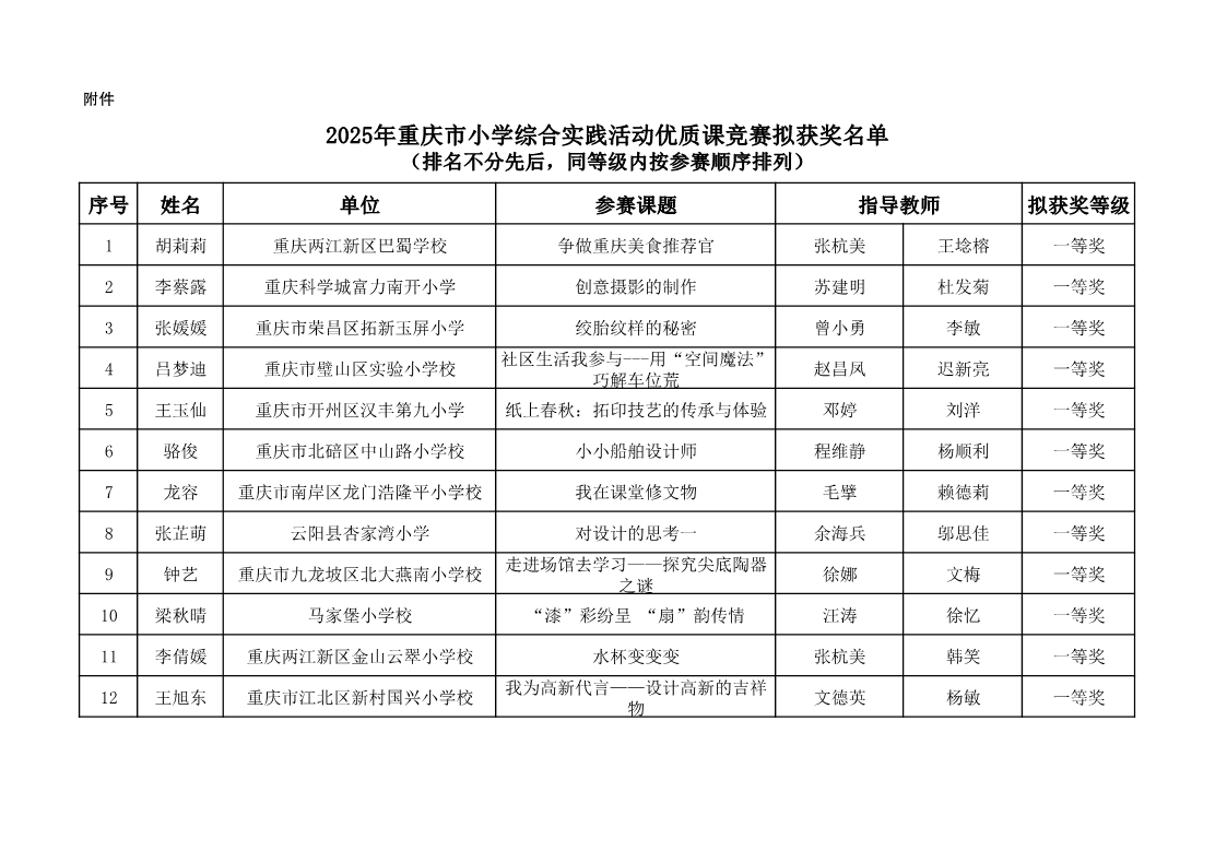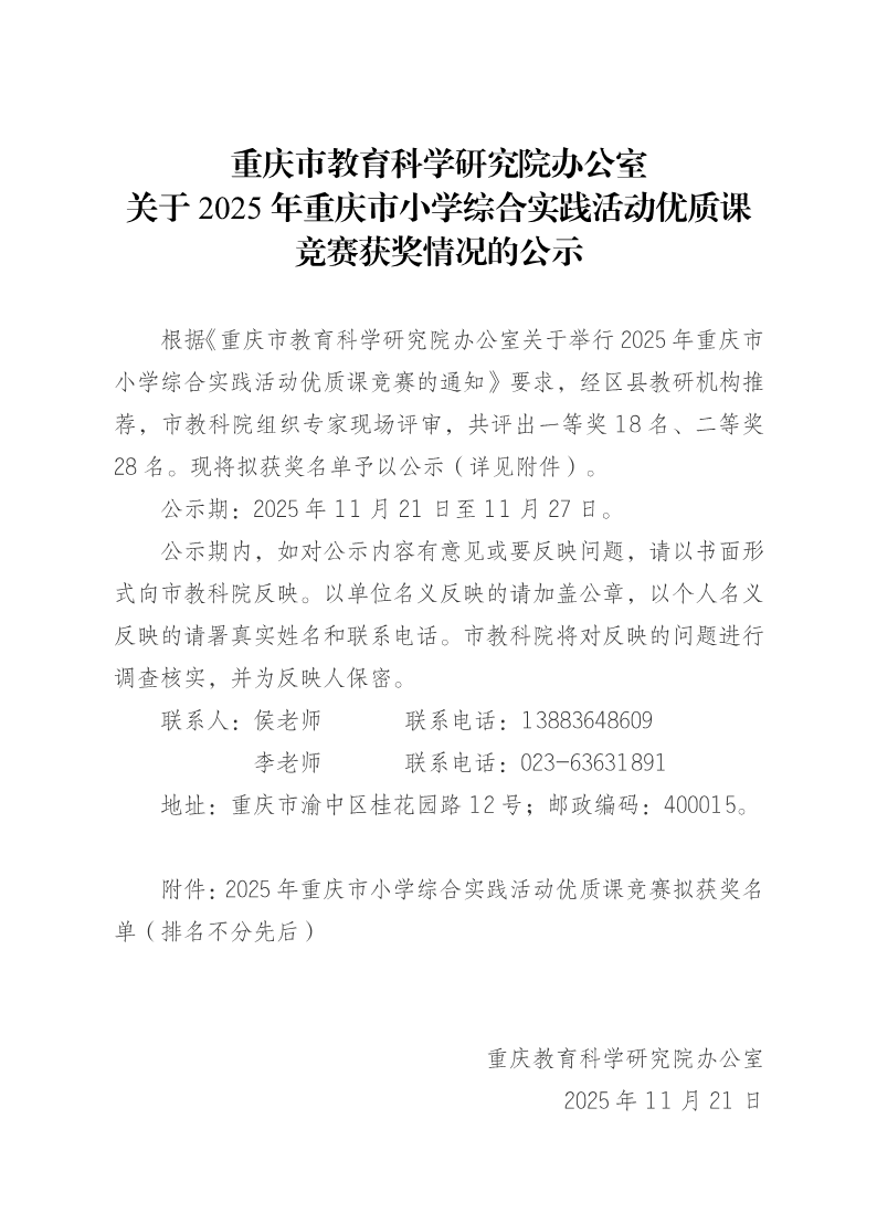 捷克论坛 办公室关于2025年重庆市小学综合实践活动优质课竞赛获奖情况的公示