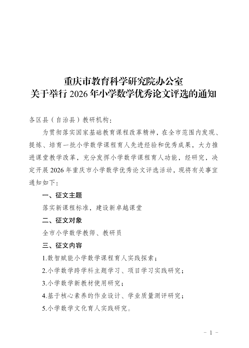 捷克论坛 办公室关于举行2026年小学数学优秀论文评选的通知