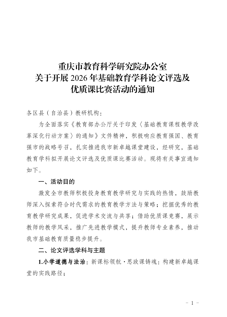 捷克论坛 办公室关于开展2026年基础教育学科论文评选及优质课比赛活动的通知