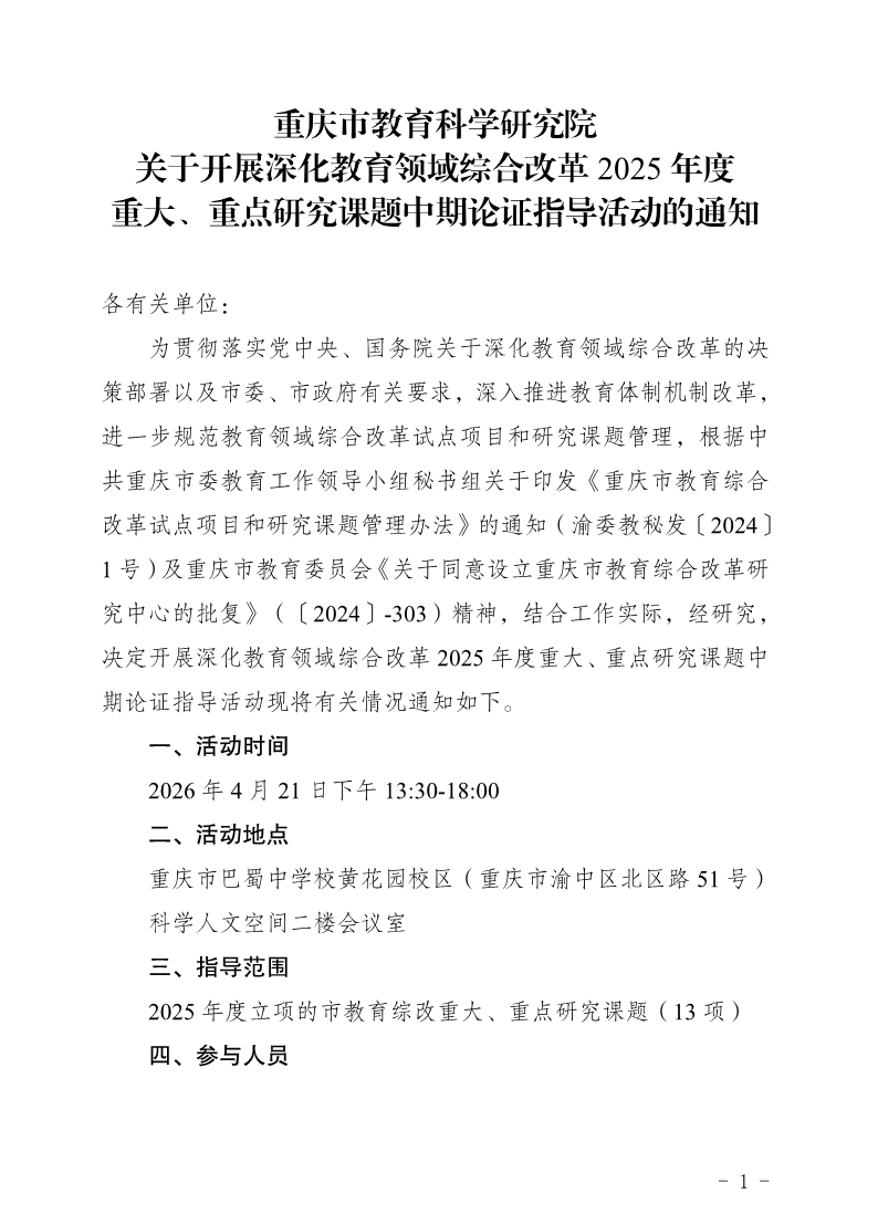 捷克论坛 关于开展深化教育领域综合改革2025年度重大、重点研究课题中期论证指导活动的通知