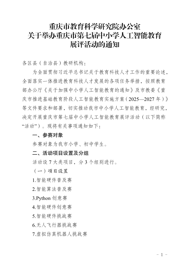 捷克论坛 办公室关于举办重庆市第七届中小学人工智能教育展评活动的通知