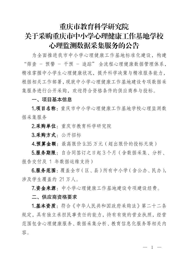 捷克论坛 关于采购重庆市中小学心理健康工作基地学校心理监测数据采集服务的公告